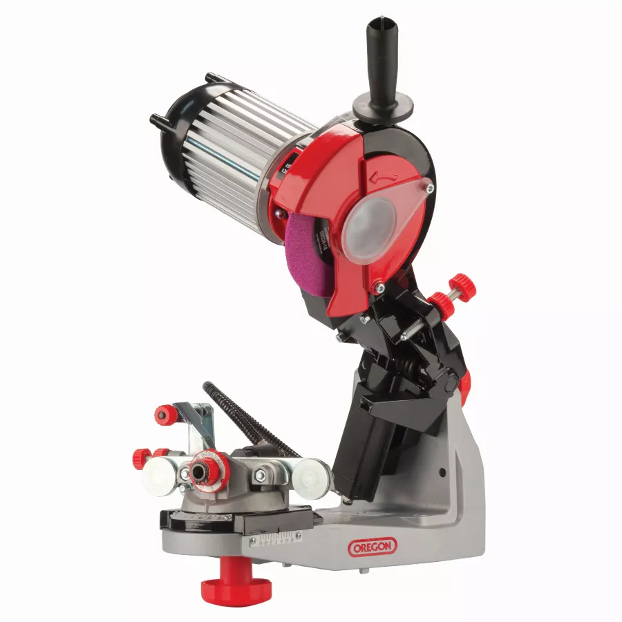 - Vous fournissant toute la praticité et la qualité attendue d’une machine de haute qualité, l’affûteuse de chaîne de tronçonneuse professionnelle 230 volts d’Oregon est dotée d’une assistance de serrage hydraulique, éliminant le besoin de serrer et de desserrer manuellement l’étau.