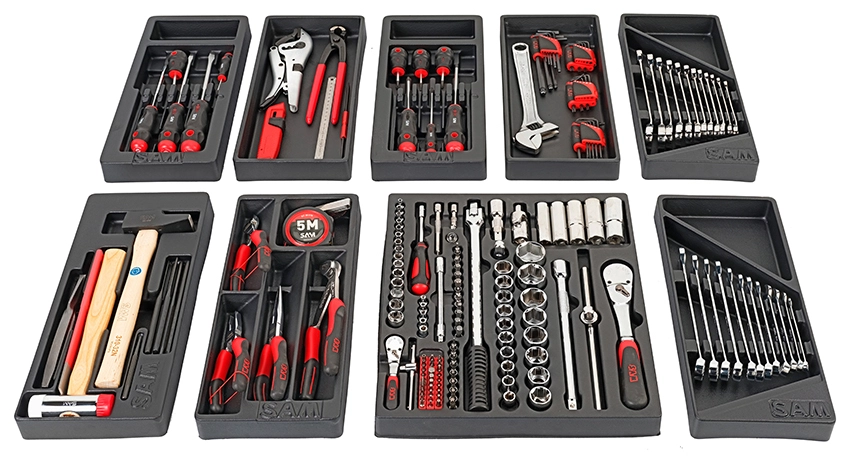 Composition de 200 outils en modules ABS livrée avec servante 6 tiroirs SERVI-630N.