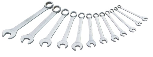 Alliance de 2 têtes de même ouverture, permettant avec la tête à fourche une approche rapide de serrage et un blocage surpuissant avec la tête polygonale dont le coudage à 15° assure une manoeuvre aisée en surface plane.