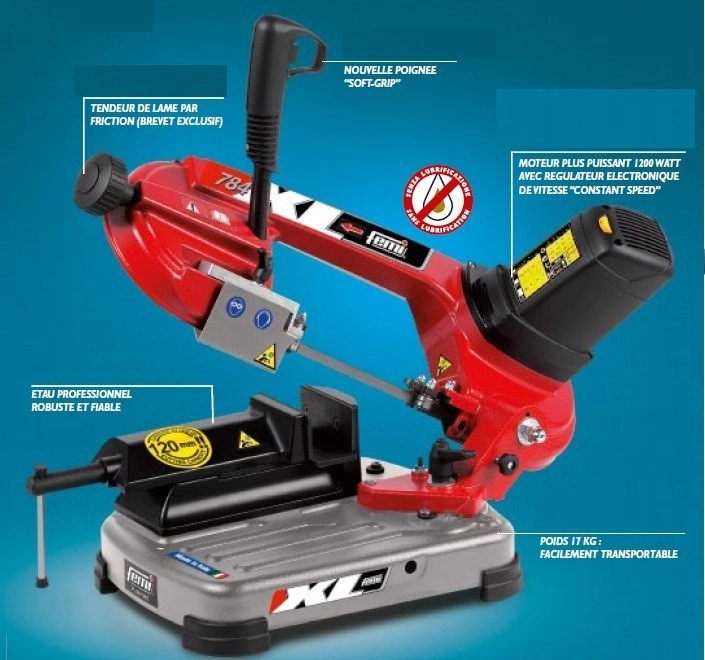 - – Nouveau tendeur de lame par friction pour le contrôle et le réglage de la tension correcte de la lame (breveté).